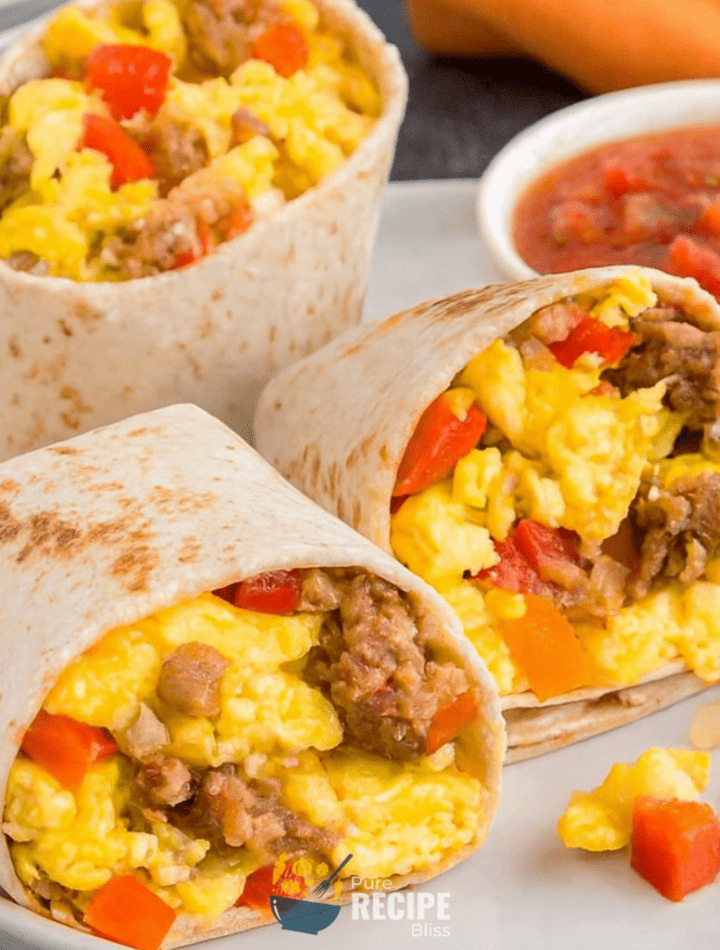 A Breakfast Burrito is basically a tortilla wrap that’s filled with scrambled eggs, melted cheese, and a mix of veggies and meat. It’s the kind of dish that feels hearty but still easy enough to put together without much effort.