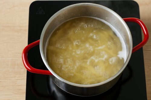 - Start with a big pot of water, add a good amount of salt, and bring it to a boil.