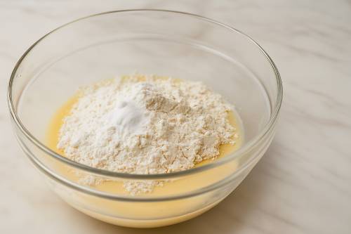 Now add the all-purpose flour and baking powder. Whisk again until the batter is smooth and lump-free.
