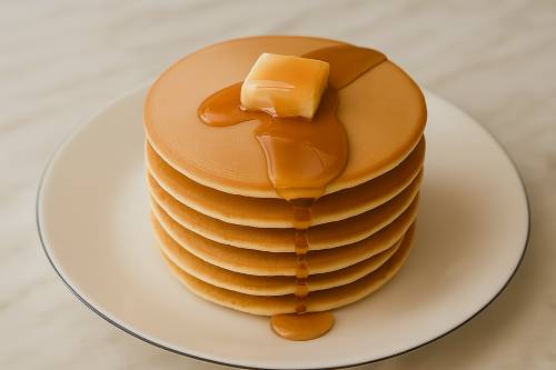 Take out the pancake, spread some butter on top, and drizzle maple syrup. And just like that, your soft and fluffy breakfast treat is ready!