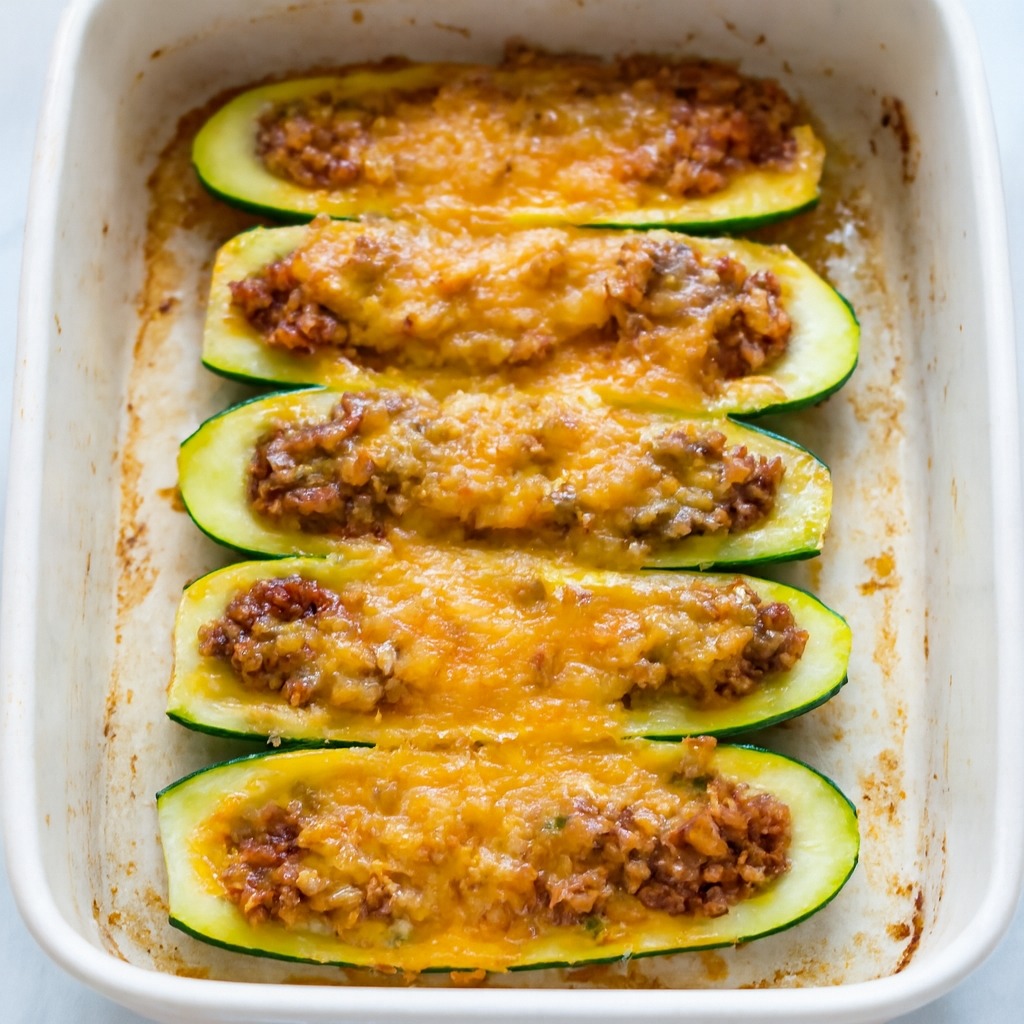 When baked, the zucchini softens while holding its shape, and the beef filling becomes savory and flavorful, often topped with melted cheese that turns golden and slightly crisp.