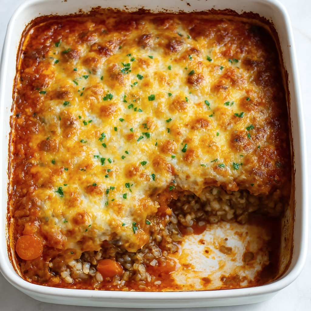 When baked, the top becomes golden and bubbly, while the inside stays rich and hearty, making it ideal for family dinners or gatherings.