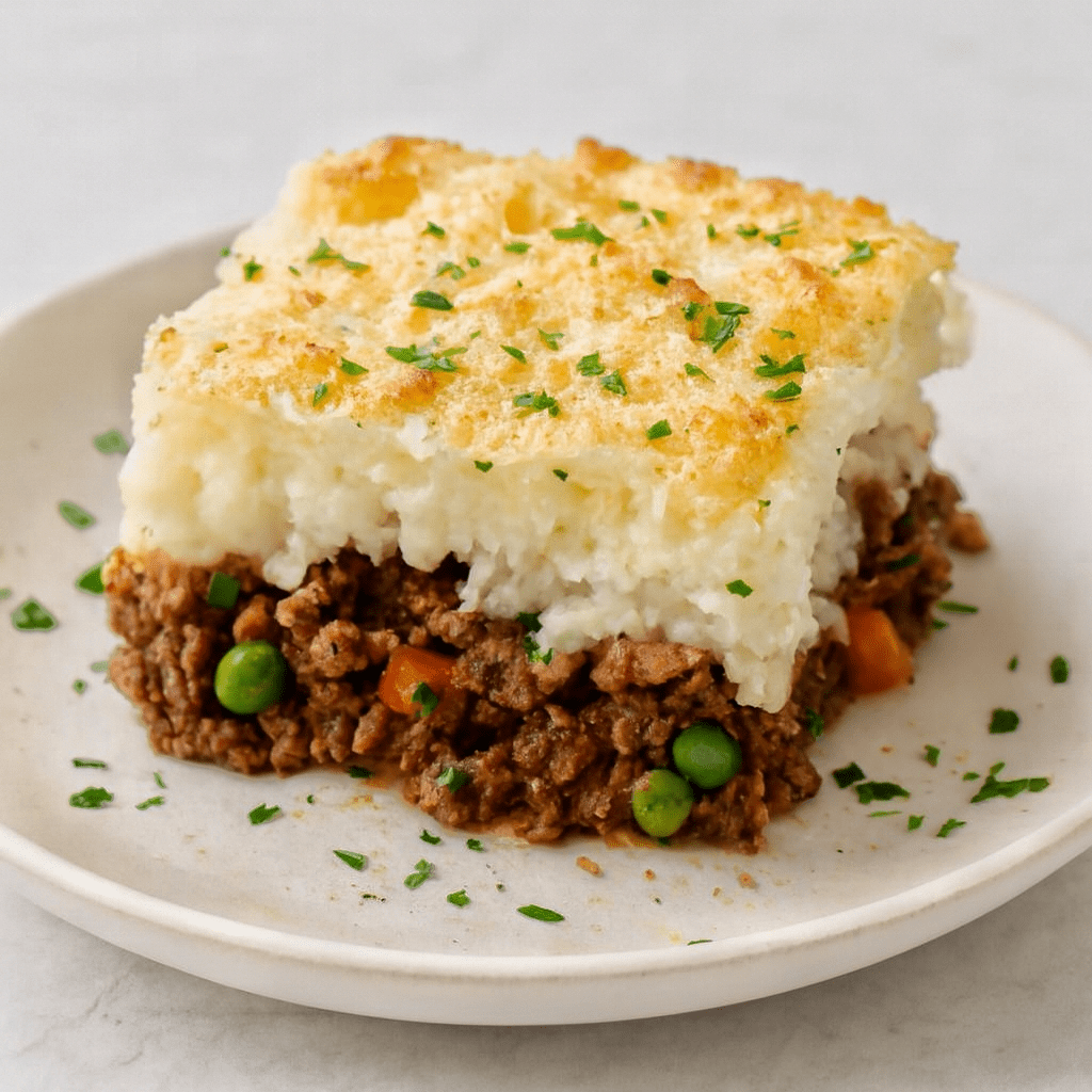It uses ground beef as the base, and then it gets topped with creamy mashed potatoes that bake into a golden crust, which makes the whole thing look inviting and taste hearty.